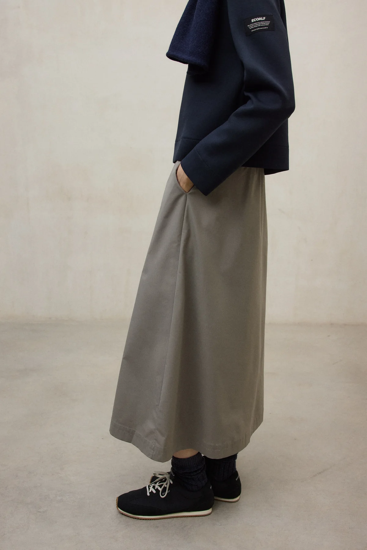 - Bolsillos franceses insertados en las costuras laterales